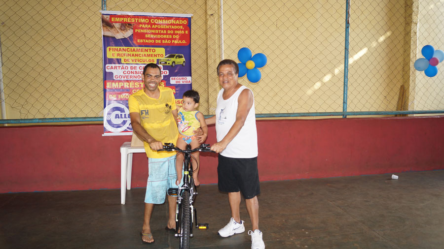 Com o patrocínio da ALLCRED FINANCEIRA, sorteamos duas bicicletas aos associados presentes, e destacamos a emoção dos contemplados.